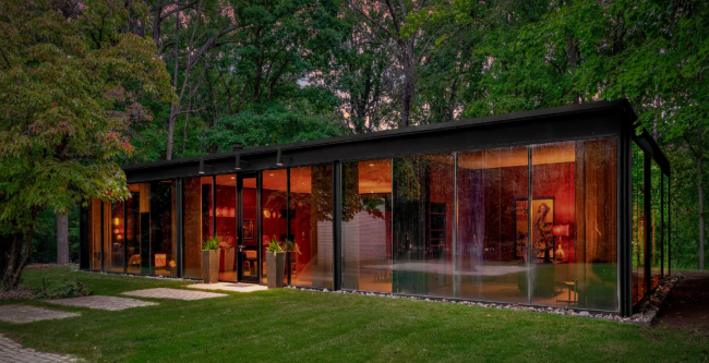 1960 - The Charles L. and Jean Weber Bates Residence, aka Glass House, 9331 Providence Road, Charlotte NC. Inspired by the Glass House by Philip Johnson. The house was accidentally built on the property line with a neighbor. Sold in 1968 to Stacy E. Simmons, also an architect. Sold in 2023 to Genia and Robert C. Rogers and Hunter Rogers. Bottom photo by Susan Meyer. For sale in 2025.
