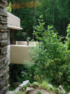 1935 - The Edgar J. Kaufmann House, aka Fallingwater, Highway 381, Mill Run PA. Fallingwater is Wright's most famous residence; in fact many believe it is America's most famous residence except for Biltmore in Asheville NC. He designed a guest house in 1938 and an addition to the guest house in 1948. In 1963 Edgar Kaufmann Jr. donated it to the Western Pennsylvania Conservancy who opened it for public tours in 1964. In 2001, the Conservancy launched an $11.5 million restoration project for major structural repairs; restoration of its wood furniture, steel sash windows, and doors; waterproofing of its flat roofs and terraces; the construction of an on-site zero-discharge waste management system; and an ambitious landscaping plan to improve the visitor experience while protecting the Fallingwater property. The structural repair to Fallingwater's main level was completed in March 2002. Second photo by Christopher Little, others by George Smart taken in 2007.
