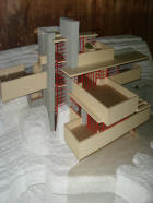 1919 - The Mrs J. P. Shampay House, Beverly Hills IL. The client withdrew amid many personality and legal conflicts during the design stage. Model by Adrian Shih. Designed byRudolph Schindler while working for Wright. Unbuilt.