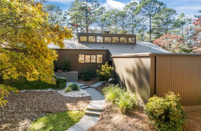 1963 - The William H. And Mae Wadsworth House, 185 Country Club Circle, Southern Pines NC. Featured in NC Architect, June 1963. Sold in 1969 to Pinehill Estate Inc. Sold in 1974 to Gerald Epley. Sold in 1987 to Robert R. and Elizabeth A. Davis. Sold in 1989 to R. Scott and Susan Boulton, still owners as of 2022. The flat roof was pitched in 2013, bottom photo.