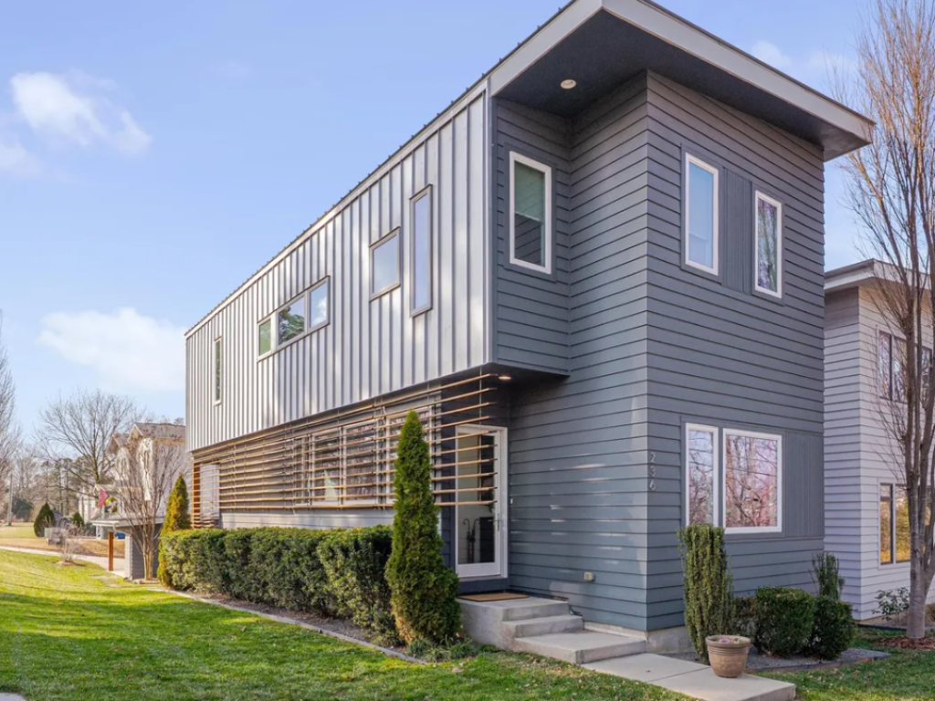 - Modern Architecture - Sun-Filled Interiors - Exceptional Location. Don't miss this striking modern construction home ideally located just minutes from downtown Raleigh, Lenovo Center, and only a 10-minute drive to RDU International Airport—offering an exceptional combination of design, efficiency, and convenience. The main level features 10-foot ceilings, 5-inch wide site-finished hardwood floors, and an open-concept design where the living room flows seamlessly into the kitchen. Walls of glass windows in the living room, kitchen, and dining room flood the home with natural light, creating a bright and inviting atmosphere. Sliding glass doors extend the living space outdoors to a covered rear deck complete with a wood-burning fireplace—perfect for year-round entertaining and relaxation. A formal dining room at the front entry provides an elegant space for entertaining. The chef's kitchen is thoughtfully designed with a center island, quartzite countertops, gas cooktop, and stainless steel appliances—perfectly balancing style and functionality. Upstairs, vaulted ceilings enhance the sense of space throughout the second level, where the same hardwood floors continue (no carpet). The home offers three bedrooms and two and a half baths, including a spacious primary suite filled with natural light from expansive glass windows. The large walk-in closet includes custom closet organizers, while the primary bathroom features tile flooring, a walk-in shower, double sinks, and quartzite countertops for a spa-like retreat. Built for comfort and efficiency, this home includes a metal roof, a closed and conditioned crawlspace, and individual mini-split heat pumps throughout for personalized heating and cooling. A detached two-car carport with storage room accessed via the rear alleyway provides convenient off-street parking while maintaining clean curb appeal. Schedule your private tour today and experience elevated urban living at 236 Powell Street.