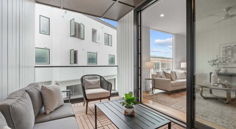 Eleven townhomes offer nine curated layouts with various 2 – 4 BR, 2.5 – 3.5 BA + Flex Space*, and one-two car garage + covered parking* options across up to ~2,800 SQ FT. Two design visions bring dueling approaches to high-style, low-maintenance living, while elevated finishes, high ceilings and huge windows add to the signature airy, stately aesthetic. Inside, an open-concept main level is primed for entertaining, while an oversized owner’s retreat offers solace an elevator* away. Above, luxury rooftops offer a serene retreat under the stars & DTR skyline view* (*in select plans).
