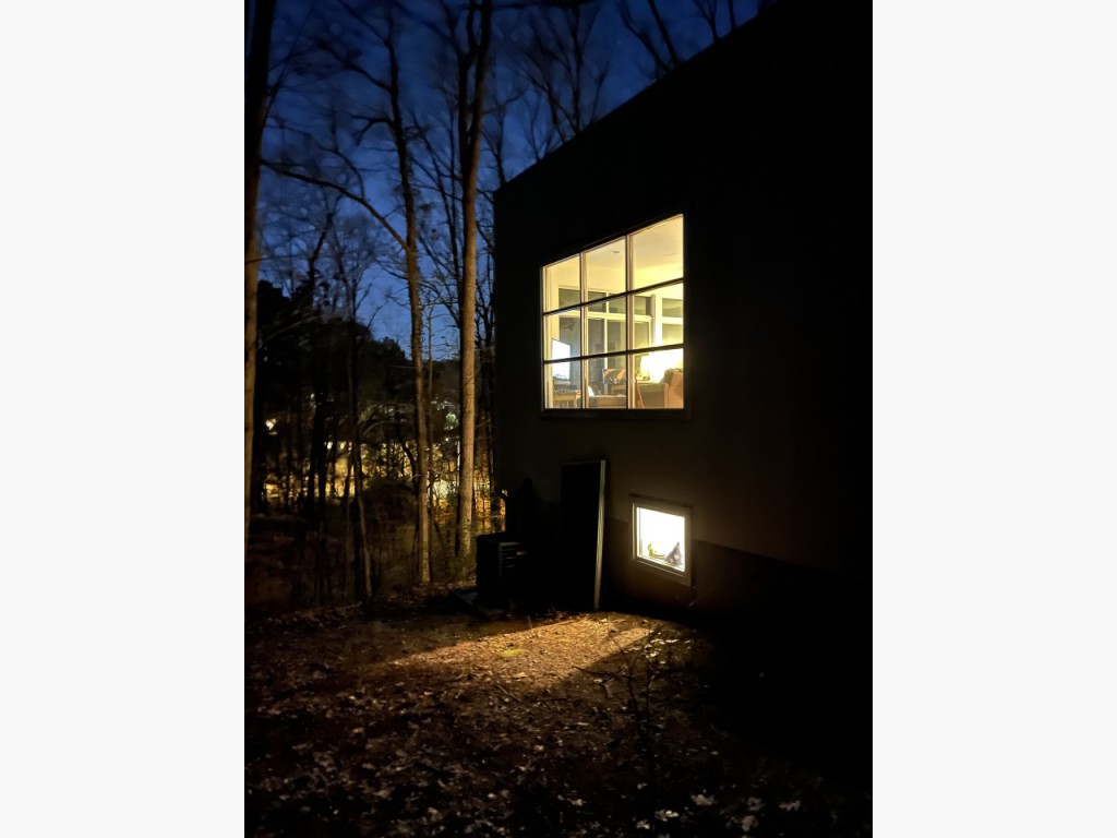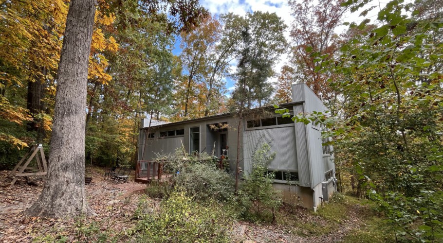 A Hillside Sanctuary on the Stream: Situated on 1.22 acres in a dramatic hillside elevation within a rare 10-acre conservation easement, the home offers a "treehouse" perspective of the surrounding landscape. Below, a gentle stream runs through the property. The protected land serves as a vibrant corridor for frequent wildlife, making it a great destination for birdwatching from the comfort of your glass-walled living room. This legal protection ensures your panoramic forest views are permanent—a "forever-green" sanctuary that can never be developed in the heart of Carrboro.