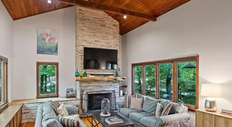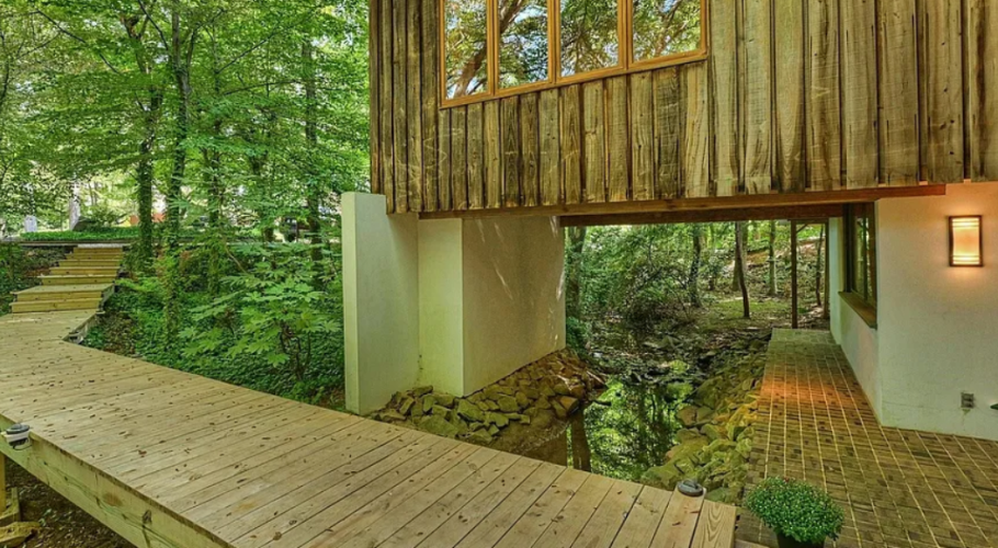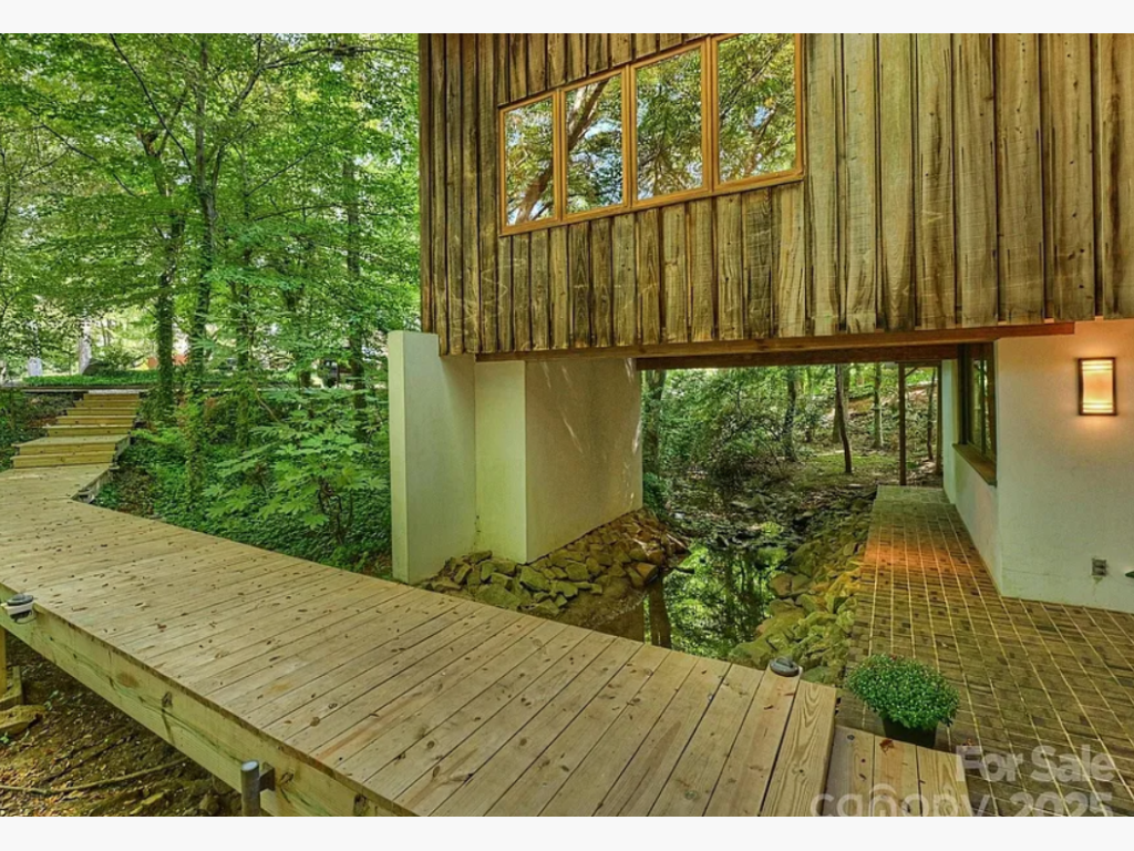 - This is a "one-of-a-kind" property ... literally. Built in 1969 and designed by renowned architect, W. Crutcher Ross, this contemporary beauty must be seen up-close to appreciate. Partially built over a creek and nestled among mature trees and landscaping on an almost acre-sized lot (.92), this home truly folds indoor living into the natural world outside. Exterior is weathered Cypress and white stucco, and the Pella windows throughout the home create an organic warmth and unparalleled connection to nature. Rear yard includes fenced garden with raised beds, a large, flat greenspace, as well as private access to the Greenway and a short walk to Park Road Park. Lower-level entry features a gorgeous, brick foyer with "floating stairs" to the main level, a library/office/flexspace with 1/2 bath, plus ample storage. Main level offers hardwood flooring and boasts a primary en-suite, with two additional bedrooms that share a full bath. Stunning Great Room with stone fireplace and vaulted ceiling anchors the interior living areas/kitchen, and transitions effortlessly into sunroom/dining areas and outside via side deck. Custom wine cellar, multiple outdoor spaces, and too many custom features to mention (see list in attachments)! Pea-gravel circular drive at street as well as separate drive across bridge that leads to additional rear parking and two-car garage. Only a 15-20 min drive to airport/uptown and walking distance to Southpark, yet it feels like the NC mountains living here in this unique setting.