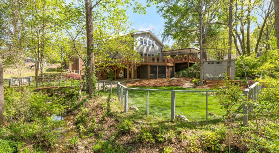 ARCHITECT'S INFORare multi-level mid-century modern home w/thoughtful upgrades by Frye Build+Design & Comer Shuford in Sunset Hills. Designed by Helen & Warren Ashby w/renowned architect Ed Loewenstein & originally built by John Hiatt, this home offers distinct living & entertaining areas across all levels. Main level includes primary bedroom, open living & kitchen space, half bath & wrap-around deck. Upper level includes 2 bedrooms w/2 full baths, one w/ ensuite bathroom & office space. Lower-level features rec room, bar w/double beverage refrigerator, sink, powder room & screened-in porch access. Two fireplaces w/gas logs. Other features - outdoor shower, fenced yard, gas line for grill, outdoor lighting, detached shed w/electricity & breaker box wired for electric car. Floor plan available. Seller is a licensed real estate broker in NC & is affiliated w/ BHHS Yost & Little Realty. Listing agent is related to Seller. Buyer to verify tax info: Tax value 2026 assessment, tax rate & tax amount 2025. - Listing Agent or Homeowner Contact Info: Hillary Meredith, hillary.meredith@bhhsyostandlittle.com, 336-202-5196