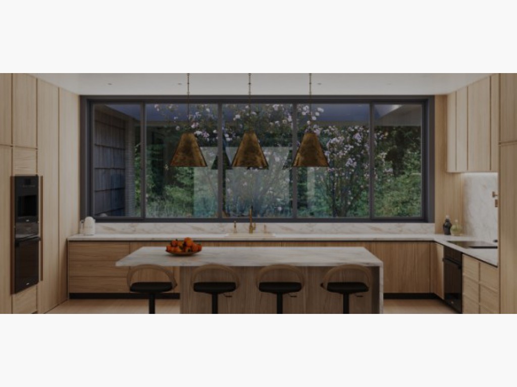 Floor-to-ceiling glazing draws your eyes and your thoughts outward. The dining room is intentionally framed for light. Each detail, from the floating shelves to the inset lighting, is crafted to elevate the everyday.