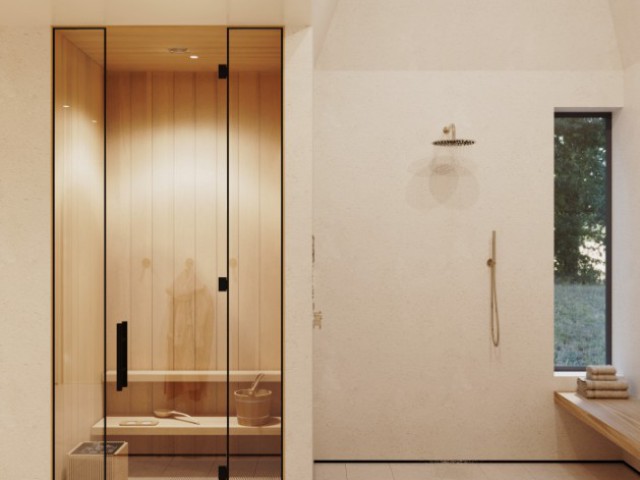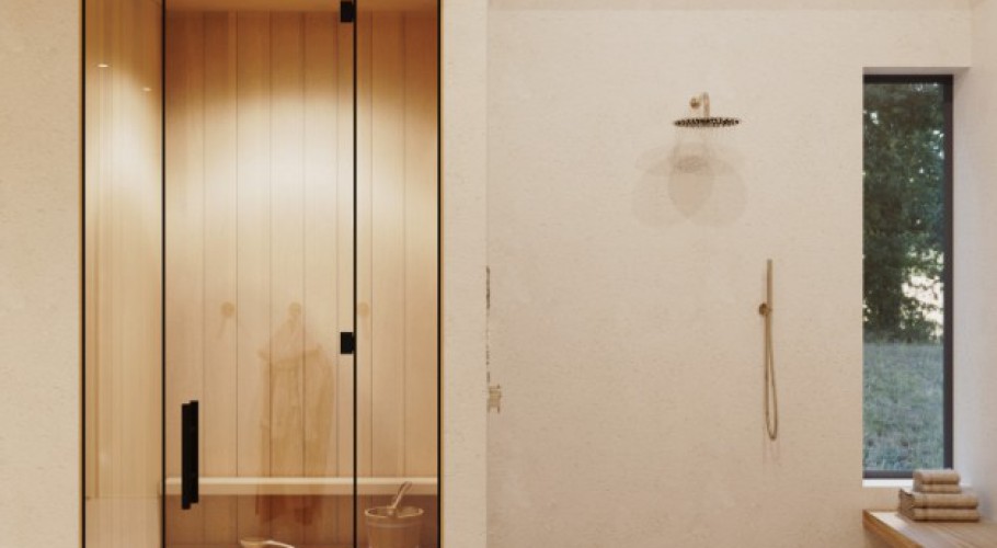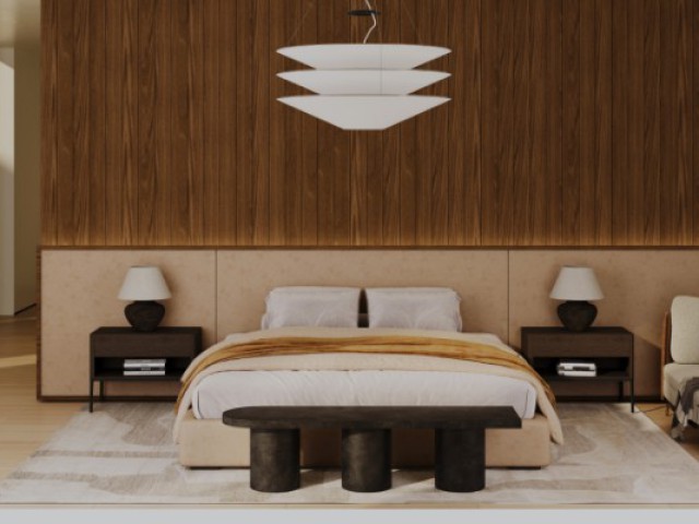 Bathrooms resemble spa sanctuaries, with floating vanities, integrated stone sinks, and curated fixtures in brushed metal and blackened bronze.