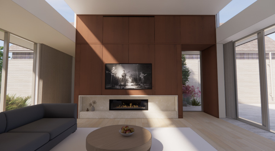 ThoughtCraft Architects, known for their refined approach to modernism, drew inspiration from Nordic principles to craft a home that feels both grounded and ethereal. The elemental palette is curated with precision—imported stone, and hand-selected woods speak in a whisper, not a shout. The home does not dominate the landscape. It dissolves into it.