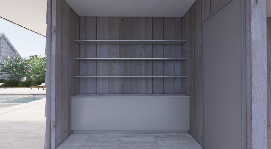 The kitchen is monastic and inviting. Seamless cabinetry, custom fixtures, and a sculptural island clad in natural stone anchor the space as both utility and art. In the living spaces, furniture breathes. The absence of clutter allows nature to speak.