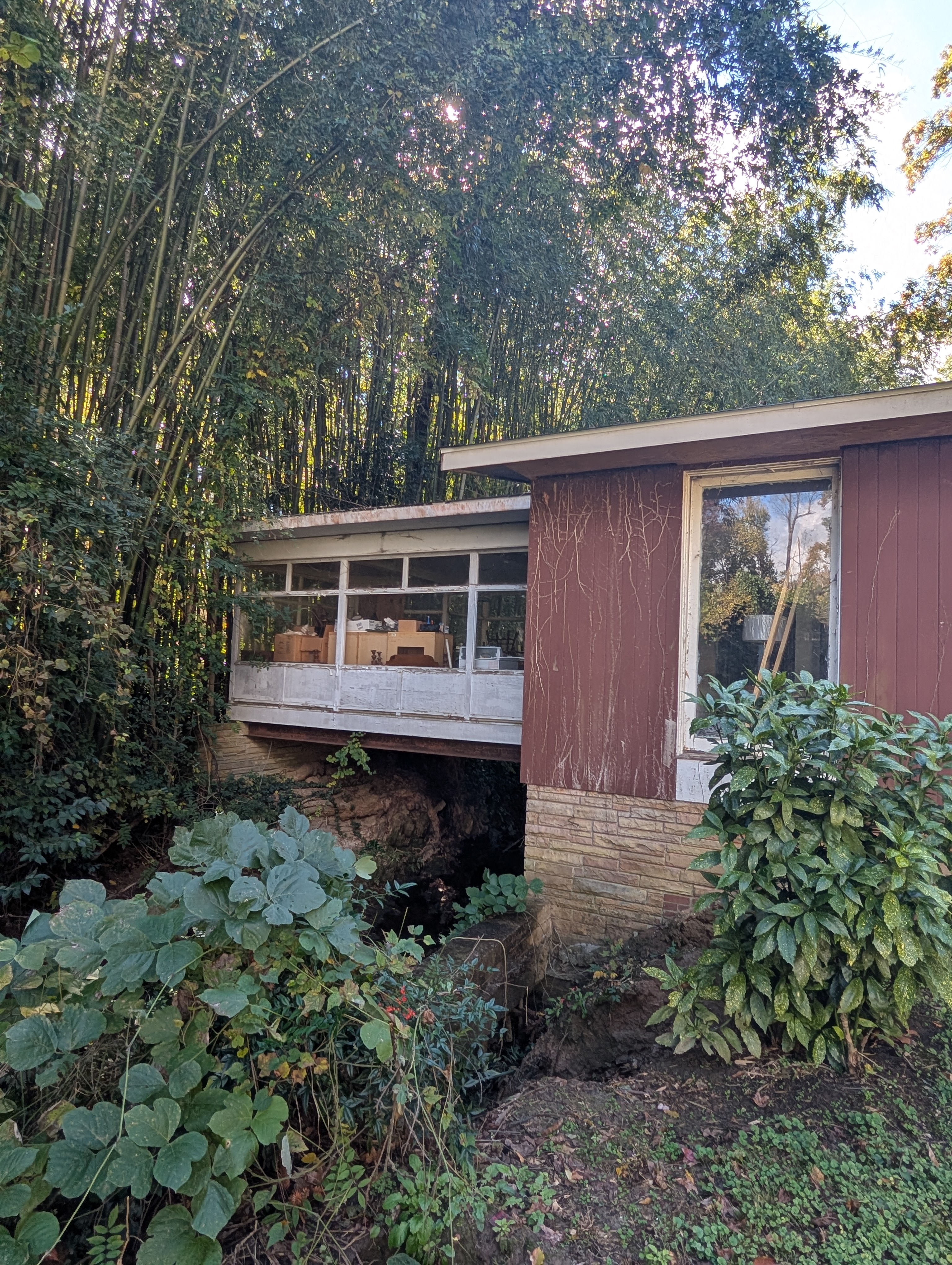 1953 - The Wade Columbus Lewis and Margaret Watts Lewis Residence, 2700 Manning Place, Raleigh NC. Uniquely built over a stream on what was the original Lewis Farm property. The house made the cover of a few magazines at the time, including Better Homes and Gardens, March 1957. Sold in 1995 to nephew Richard Watts. Deeded in 1999 to Watts' Truswood Properties which also owns adjacent lots to the north. Used primarily for storage for 26 years, the house is in poor condition and a prime teardown target. For sale in 2025.