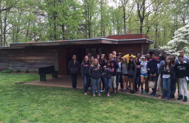 While we were in DC, we ran into Tara Barthelmess, Project BauHow students from Rolesville HS, who separately toured the Pope Leighey house, below: