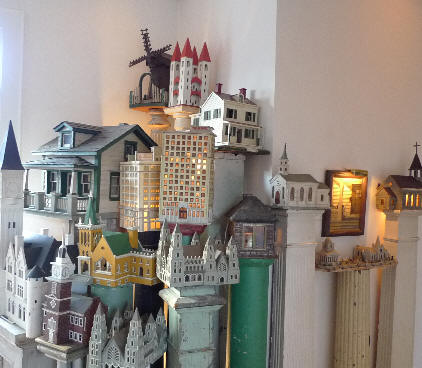 In the historic district of Hillsborough, Steven Burke and Randy Campbell’s home – a grouping of five modern Greek Revival buildings they have designed on the site since 1994 – is a private museum, not routinely open to the public. It contains the nation’s largest collection of American folk art buildings, over 1,000 renderings of houses and stores, Ferris wheels and carousels, gas stations and factories, Grant’s Tomb and Independence Hall, theaters and schools, an ice rink and a bowling alley, bridges and castles and churches. Made mostly from the 1860s until about 1950 by largely anonymous persons, the buildings of real or imagined communities tell much about our culture, history, and architecture. This event was a rare opportunity to see the nationally unique collection and to experience, in small scale with large delight, our architectural history.