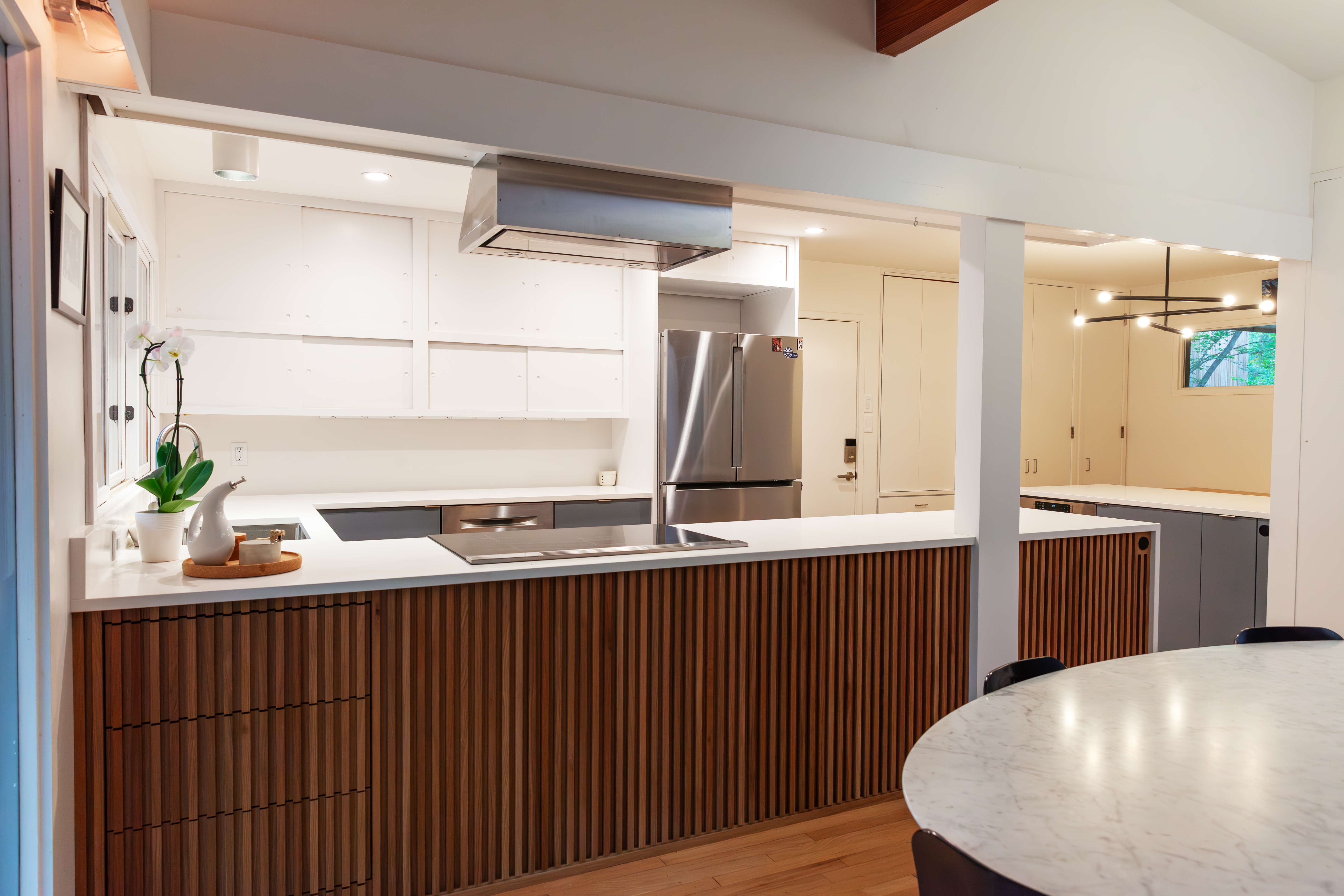 1966 - The J. Herbert (Herb) and Catherine Holland House, 1904 South Lakeshore Drive, Chapel Hill NC. Architect unknown. Built by J. P. Goforth. Sold in 1970 to Jamescina and Joseph J. Degraffenreidt Jr. Sold in 2006 to Scott Dwyer. Sold in 2012 to Katherine M. Norton and Fernando B. Salcedo. Kitchen renovations by Becky Shankle/Ecomodernism, bottom photo. Sold in 2015 to Eric Blair and Isabel Llorente as the Blair Llorente Trust. Sold in 2018 to Robertus Van Kempen and Maria Van Tilburg. Exterior photo by Dail Dixon.