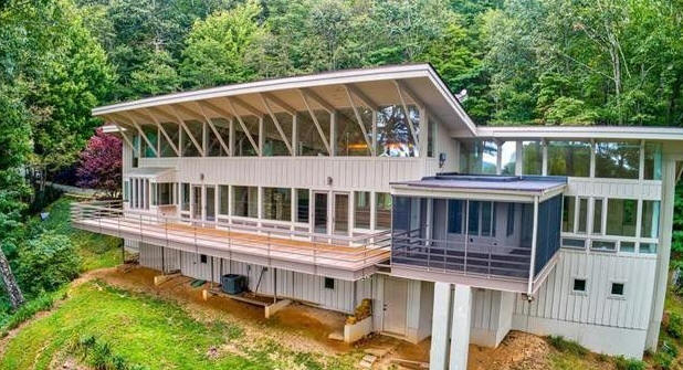 1973 - aka Long House, 1479 Whiteside Mountain Road, Highlands NC. Sat vacant and deteriorating for five years. Sold in 1974 to J. Milton and Peggy B. Newton. Deeded in 2010 to Millard M. Bush III. Sold in 2011 to Wildcat Ridge, LLC. Sold in 2014 to Jimmy L. Sweat and Peter Almerico Jr., who did a renovation. Sold in 2023 to Carla and John Mabry. Still owners as of 2025. Photos by Ryan Karcher.