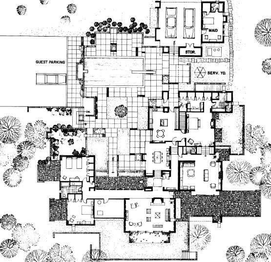 1955 - The William F. and Beverly Freeman Jr. House, 1403 Emerywood Drive, High Point NC. Color photos by Amy Freeman. Sold in 1971 to James R. and Marlene Stanton. A master bedroom wing was added, and many of the Modernist featured were covered over. Sold in 1982 to Robert O. and Linda Wells. Sold in 1986 to George W. Jr. and Margaret G. Aaron. Sold in 1988 to William C. and Patricia J. Parks. Sold in 2003 to Judith M. Baker and Anne D. Cooke. Sold in 2007 to Amy A. and architect Peter H. Freeman, his son, who did a complete restoration. Sold in 2020 to Ralph B. Gamble. Renovations in 2024.