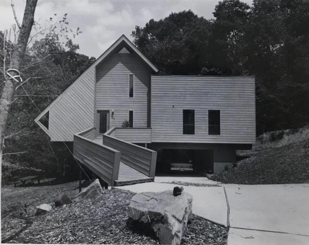 1981 - 200 King Owen Court, Charlotte NC. Sold in 1982 to Charles Horne Jr. Sold in 1985 to John and Marian Hensley. Sold in 1986 to Jean and Robert Burnett Taylor Jr. 1988 - Model for a spec house, unbuilt. Gilstrap described it as "a logical departure from the square/rectangle stronghold without wandering into the geodesic dome world."