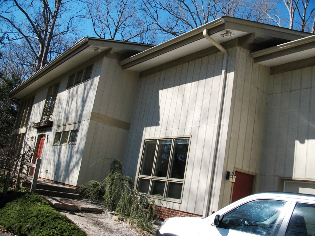 1972 - The Germaine Bree House, 2135 Royall Drive, Winston-Salem NC. J. J. Kim, a member of Ramsay's firm, prepared the plans. Sold to Michele Gillespie and Kevin Pittard. The far right section with the lower roof pitch is an addition. Photos by Gabe Nicholson.