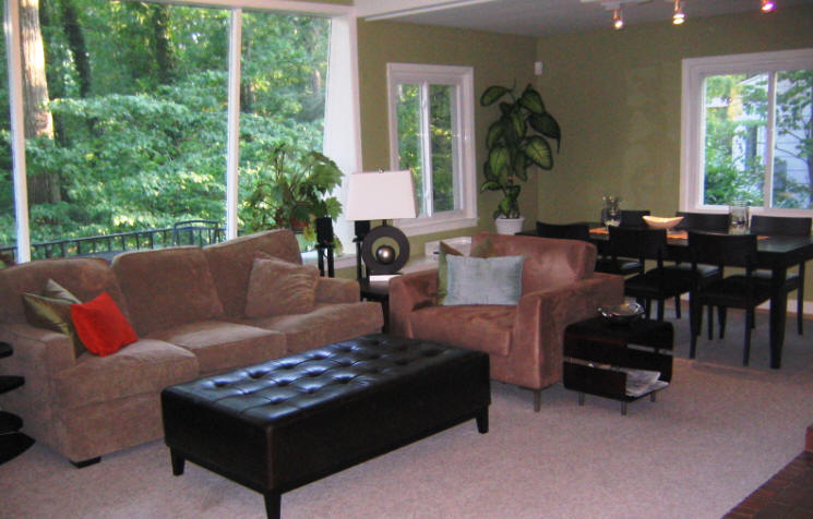 1949 - The Joe Rivers House, 403 Carolina Circle, Durham NC. Originally located next door to George Watts Carr's son Robert Carr. According to Edgar Carr [Robert Carr's son and Joe Rivers' godson], Joe Rivers and his wife Sneed built this house on a very modest budget. The Rivers house consisted of an entry hall, a combination living/dining area with a sloped wood roof deck ceiling, a southern exposure through a large plate glass window sloped outward below overhang to avoid direct sun, a split level to accommodate two bedrooms above a work shop garage, and a kitchen adjacent to dining. Sold to Lillian E. Bittle in 1961. Sold to Andrea H. and Robert H. Bittle in 1988. Sold to Miriam Ellen Sander in 1992. Sold in 2005 to Josh and Sarah Cohen. Sold in 2009 to Paul E. Dunlap. Photos by Josh Cohen. Sources include: Josh Cohen; Robert Carr; Edgar Carr. |
